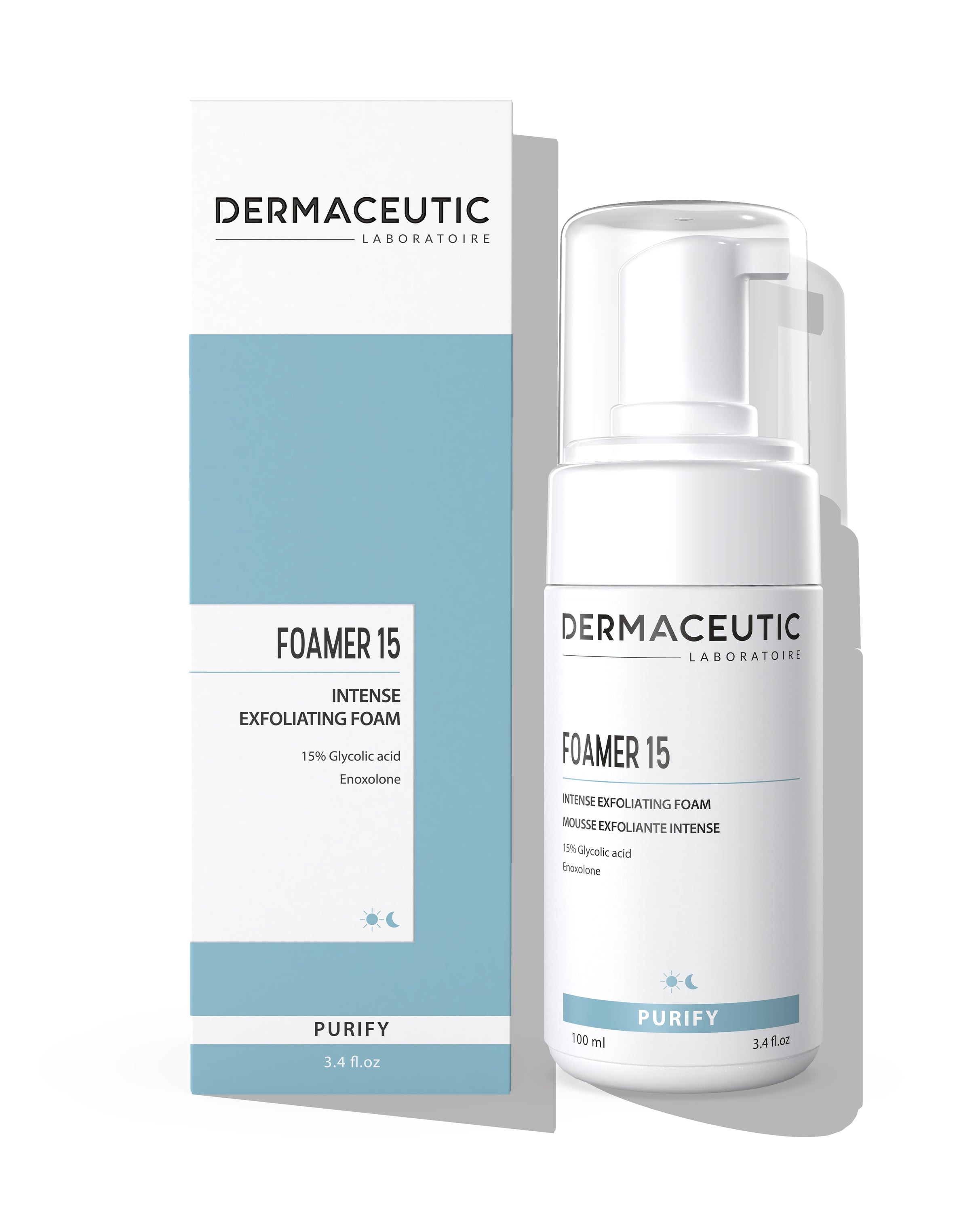 As an exfoliating foam, Foamer 15 purifies the skin without harmful physical exfoliants which can damage an sensitize the skin barrier. The Glycolic acid exfoliates the skin while Enoxolone soothes the skin, removing dead skin cells and leaving the skin glowing.